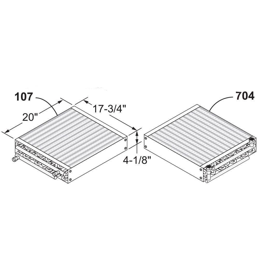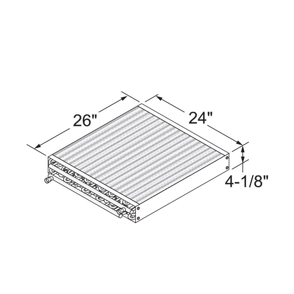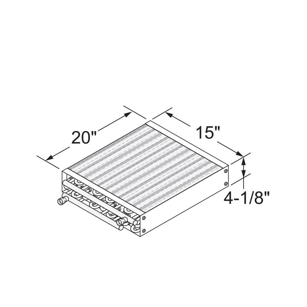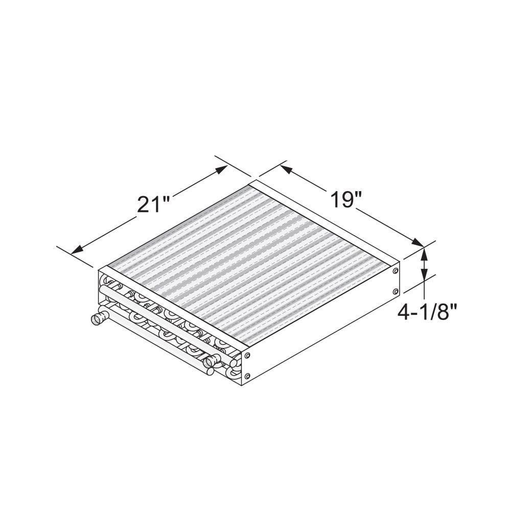 Water-to-air heat exchanger coils available in different sizes with different Btu outputs. Ideal for forced-air furnaces. Be sure to check the dimensions of the coil and the approximate plenum size, in addition to the outlet configuration.